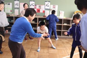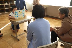 続いて昔の遊び「はないちもんめ」で交流、突然のお誘いにも関わらず気持ちよくご対応いただきました。それにしても懐かしいメロディ♬