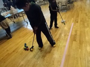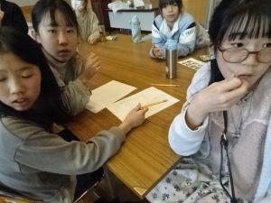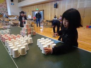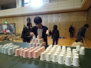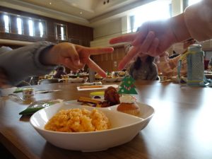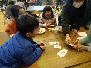 クリスマスソングが流れる中、楽しい触れ合いのランチタイムでした。兼山っ子の「ごちそうさまでした」の合図でゲームタイム、今回も楽しいゲームをたくさん準備してくださいました。