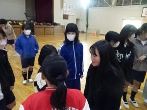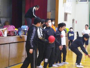 さて、6年生は来春この兼山から共和中学校へ進学します。16日、火曜日に中学校で仲間となる伏見小学校との交流会に出かけました。今回は、伏見小の体育館でドッジボールをして楽しみました。伏見小のみなさんの、とっても温かいお出迎えでさっそく仲良しに。男子VS女子の変則ドッジボールを時間たっぷり楽しみました。ゲームを楽しみながら、自己紹介をし合う場面もありました。兼山の子しか触れないボールを作ってくれるなど、優しさにも触れました。
