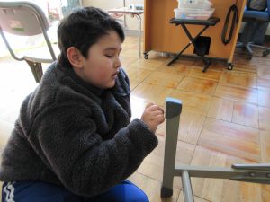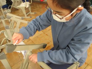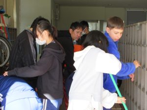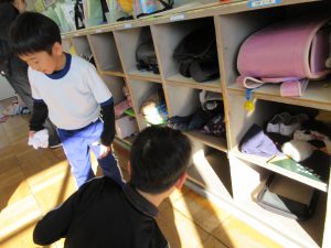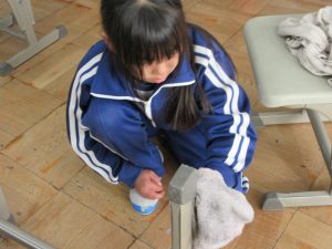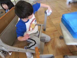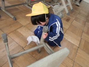 今年最終週の月曜日、給食時間の後全校で大掃除をしました。といっても、普段なかなかできない机やいすの脚の裏、靴箱、ロッカーの、ホコリ取り、拭き掃除、整頓です。