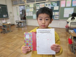 1年生は、冬休み用の本を借りてきました。「たくさん読んだよ!」ってカードを見せてくれました。
