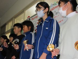 クリスマスにちなんで、お昼休みに5年生が「ジングルベル」をハンドベルで演奏してくれました。すてきな音色をありがとう🔔