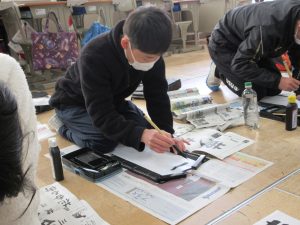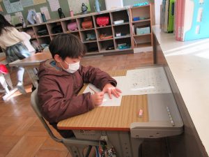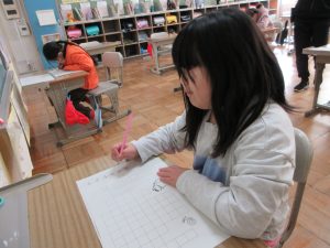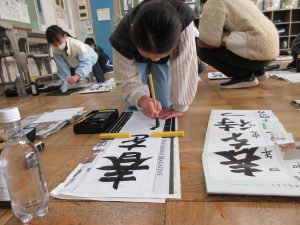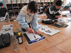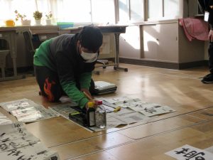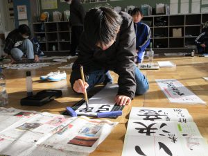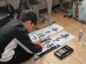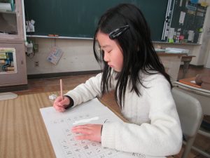 全校一斉に行ったので、校舎に「春の海」が流れる中での活動でした。真剣に向かう姿から、顔の表情はお察しくださいね。