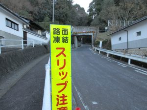 一層冷えました。今朝は城戸坂の歩道まで凍結防止剤(塩カリ)が撒かれていました。