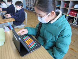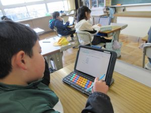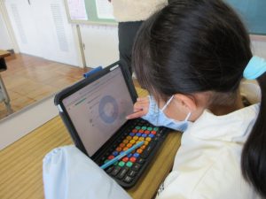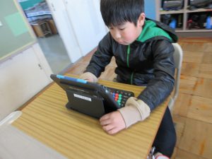 今朝の朝活動は学習。4年生ではタブレットの教材(キュビナ)に、取り組みました。国語、算数、理科・・・と、自分で選んで取り組みます。「苦手だから」「得意だから」とその理由も一人一人違っています。自分から進んで取り組んでいることは、みんな同じです。「わたしが好き!」が増えそうです。