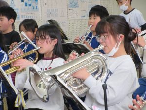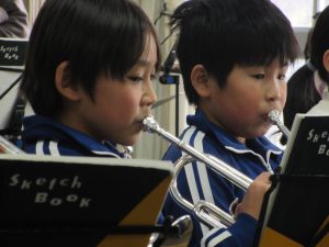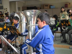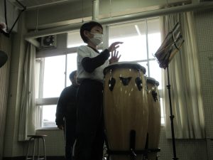 今日はB昼の日!時間通りに、それぞれの教室でパート練習後、音楽室で全体練習を行いました。アフリカンシンフォニーの曲が、どんどん出来上がっています。口ずさんでも難しいリズムにも果敢に挑戦!