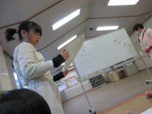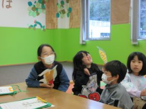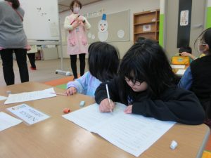 2年生が、生活科の「どきどきわくわくまちたんけん」で、兼山児童館を訪れました。始めに、児童館の先生方へ「兼山児童館はいつからありますか?」「児童館でのお仕事はどうですか?」・・・など、質問をしました。「20年前にできました。」「とっても楽しいです!」と答えてくださいました。