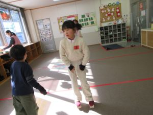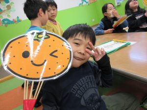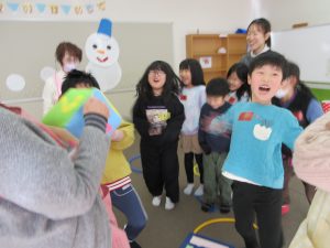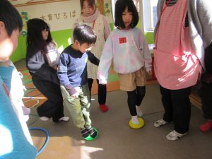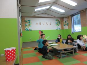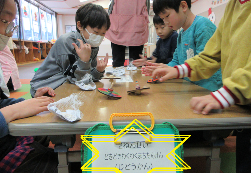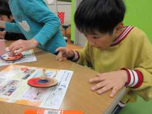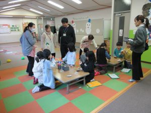 続いて、児童館の活動体験、歌遊び・コマ作り・人間すごろくなど、たくさんの活動を楽しみました。