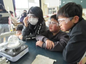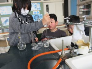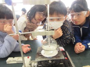 4年生が理科の「水の温まり方」の実験をしました。火を使う実験なので、安全第一、慎重に活動しました。10~12度の水がの温度がコンロの火で98~100度まで上がっていく様子を仲間と観察することができました。普段は、ポットで簡単にお湯が沸き、お風呂にも適温のお湯が整う生活だからこそ、実感の伴う実験が大切ですね。