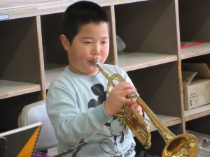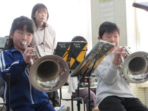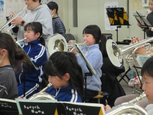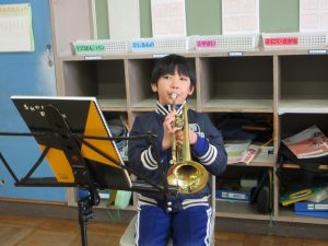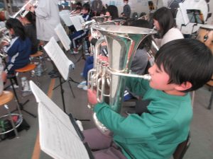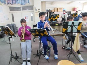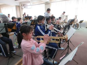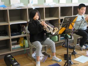 午後からは、金管バンド練習、2時間コース!3年生、トランペットで「かえるのうた」と「きらきら星」の演奏を頑張っています!一生懸命が伝わってきます!