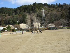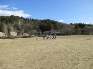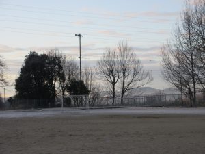 真っ白な校庭、毎日寒さを伝えていますが、今朝の城戸坂は冷凍庫の中を歩いているくらい本当に冷えていました。明日、実際の温度を確かめてみます。(温度計を持参して・・・)