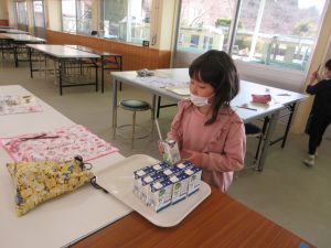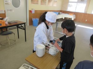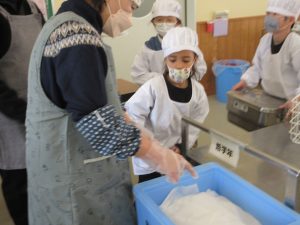 今月からスタートした、1年生の給食当番もやる気満々!がんばっています!
