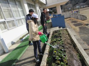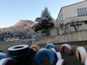 学校周りの美しい雪化粧の朝になりましたが、通学路は凍結もなく安堵しました・・・が、