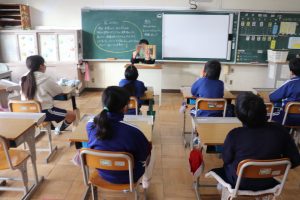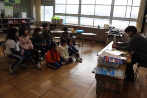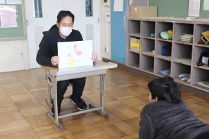朝活動は読書旬間のイベントの一つ、担任の先生以外の読み聞かせでした。