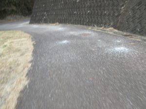 今朝の登校に備えて昨日も融雪剤を撒いておきました。