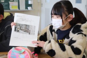 今日は、1~4年生が「冬を探そう」5,6年生が「季節感のある記事を探そう」をテーマに、先週探した写真や記事をもとに仲間と交流しました。同じテーマでも、「雪」「スキー場」「箱根駅伝」「サンタクロース」「いちごの出荷」・・・等々、たくさんの記事が挙げられていました。自分が選んだ記事や写真から事実をつかみ、自分の考えを含めながら仲間に分かりやすく伝える活動を通して、理解力、思考力、表現力を育んでいます。どの学習にもつながる大切な力です。