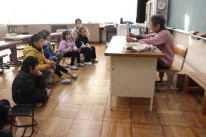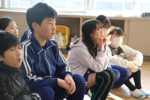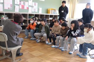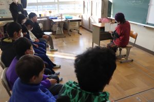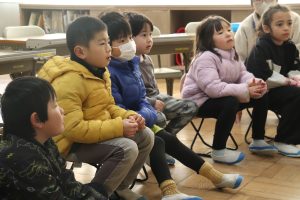 今朝は、地域のサークルの皆さんの読み聞かせでスタートしました。今日も、さっそくお話の世界を楽しんでいる姿がたくさんありました。絵本や紙芝居を通して、子どもたちは新しい事物や出来事に出会い、感性を働かせ、語彙力を高めていきます。サークルの皆様、寒い中ありがとうございました。