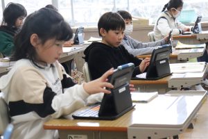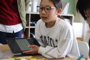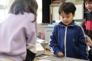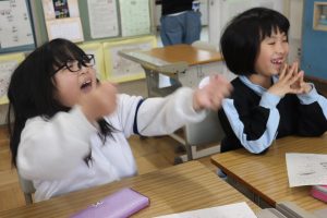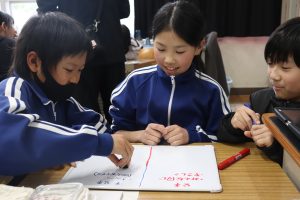 参観日の様子です。おうちの方の温かなまなざしで、子どもたちのちょっぴりの緊張感と大きな安心感を感じる授業風景でした。これも兼山大大ファミリーの空気ですね。
