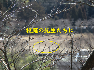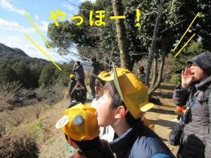 最後は、見晴らし台近くまで上り兼山小学校を見下ろしました。校庭にいる先生たちと「やまびこごっこ」を楽しみました。