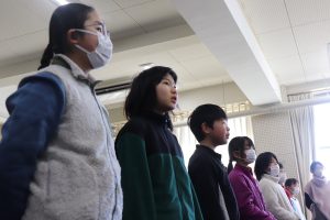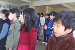 ・・・言いたいところですが、体調不良でお休みの子も増えてきました。今朝は、全校音楽で「マイバラード」を歌いました。この仲間で歌うのもあとわずかです。ありがとうの会では、みんなで歌えることを願っています。
