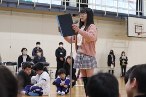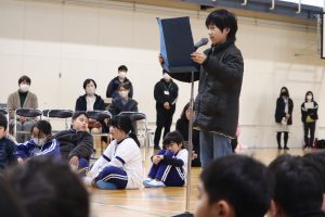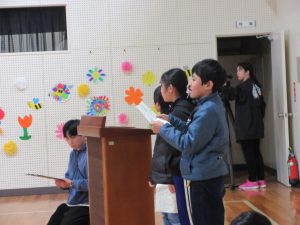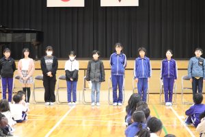 その後、6年生へのメッセージ、5年生が一人一人の素晴らしいところやお世話になったことを丁寧に伝え、ありがとうの気持ちをいっぱい伝えました。一人一人にたくさん伝えられるのは兼山小の魅力です。心に沁みるメッセージが6年生の「わたしが好き!」の笑顔の”もと”を膨らませます。