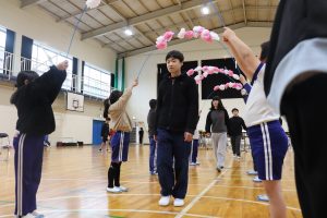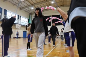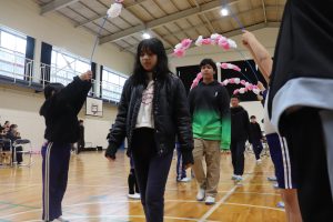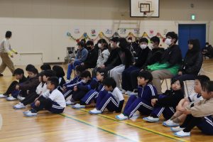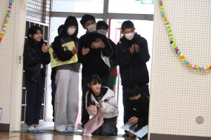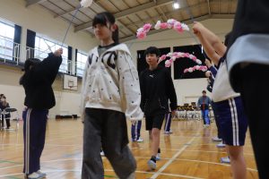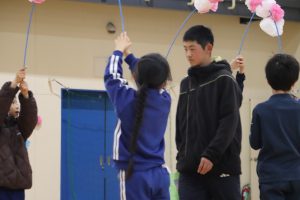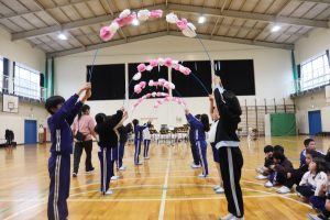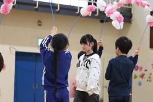 午後から、全校で「6年生ありがとうの会」を行いました。2,3年生が花のアーチで6年生を迎えます。