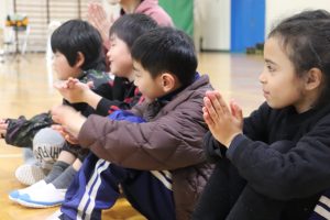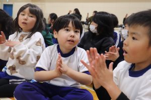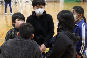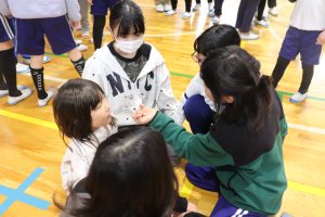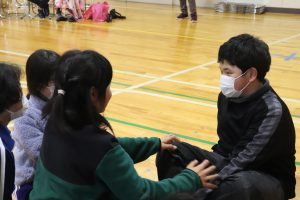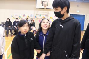 続いて、ゲームを楽しみました。企画は5年生。6年生が主役になるような工夫に6年生への思いやりを感じました。「あなたが好き!」です。いつもの仲良し兼山っ子たち満載でした。