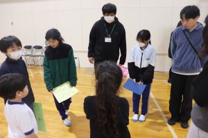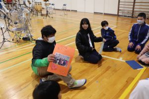 今度はファミリー班に分かれて、1~5年生のみんなからのメッセージカードを渡しました。