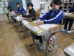 完成!この後、5年生はエプロンを使っての楽しい実習が待っています。今日が2月の最終登校日になりました。3月、みんな元気に過ごせることを願っています。