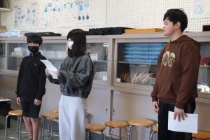 発表を聞いて、すぐに交流します。自分事として仲間と考えます。