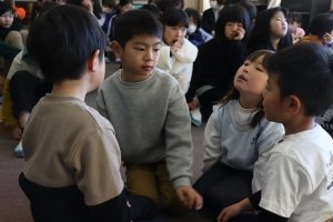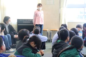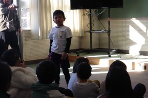 最後に代表の子が発表をします。突然の呼びかけにも、進んで意見が言える姿が素晴らしいです。「わたしが好き!」です。(時間の都合で3人ですが、本当はもっと手が挙がりました。)