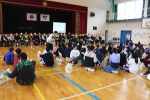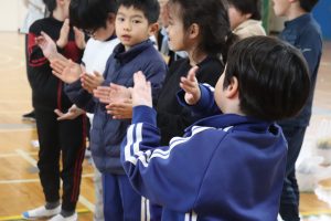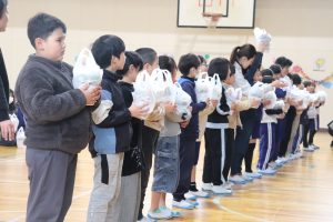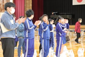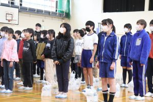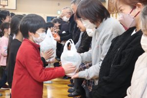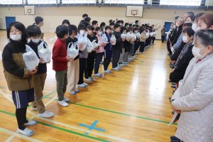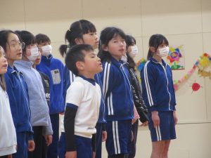 午後から、この1年間お世話になった方を招いて「地域の方へ ありがとうの会」を行いました。兼山っ子たちのために、30名を超す地域の方がいらしてくださいました。6年生がお礼の言葉を伝えます。
