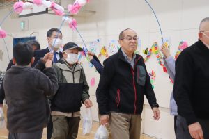 会の後、「これからもお願いします。」の気持ちを込めて、アーチと拍手で送りました。