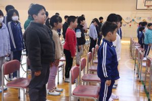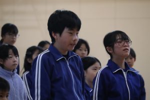 今日は、全校で卒業式の練習をしました。初めての全校練習でしたが、少し寒い体育館でみんなが緊張感をもって練習に臨みました。「あなたが好き!」の姿ですね。