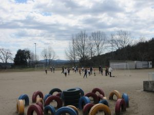 雨上がりの朝から一気に青空になり、昼休みには恒例のサッカーを楽しむ歓声が響きました。