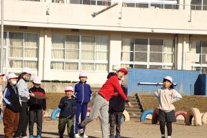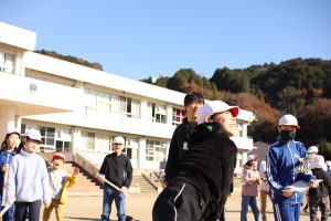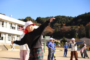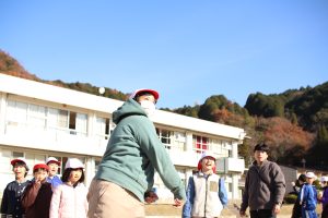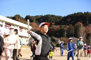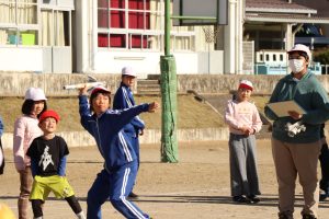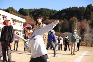 みんなで楽しみながら兼山っ子の投げる力をつけることをねらっての活動の中に、学年を超えた仲間と自然に触れ合う様子が、心を温かくします。