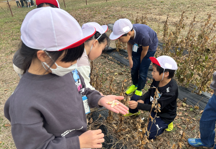 さやの中に大豆が入っていることに驚く姿や、丸くきれいな大豆を見つけて喜ぶ姿がたくさん見られました。