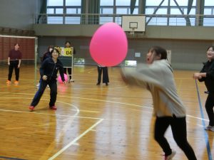 帷子小学校と合同で家庭教育学級によるワンバウンドバレーボールが行われました。しっかり準備運動をして(ラジオ体操)楽しく体を動かすことができました。