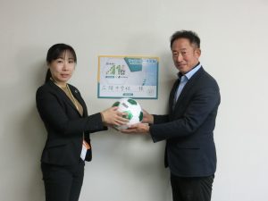 明治安田生命さんから「未来世代応援アクションwith Jリーグ」というコンセプトでサッカーボールを寄付していただきました。