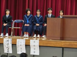 R8年度前期生徒会役員選挙がありました。11人の生徒が立候補した理由とやりたい活動を詳しく述べました。どの生徒も広陵中学校をさらによくしていきたい、みんなが楽しく学校へ来れるようにしたいという願いを力強く語ってくれました。