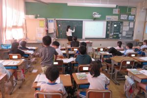 今日は、2名の教育実習の先生が、実習のまとめとなる授業を行いました。大学の先生も参観にいらっしゃいました。