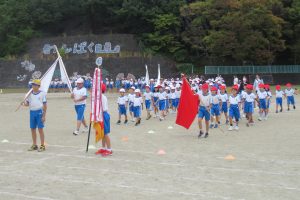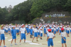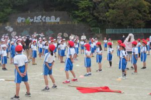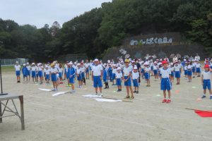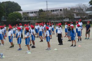 今日から後期のスタートですが、早速、運動会の全校練習を行いました。