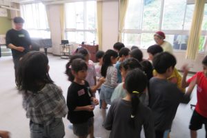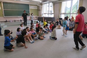 今日は、「じゃんけんすごろく」や、グループごとに「いろいろな動物になってみよう」というテーマで、力を合わせて動物の動きを表現し、それを当ててもらうことに挑戦しました。
