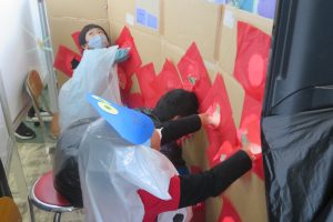3組さんは玉入れ、4組さんはクラフト、5組さんはクイズ、6組さんはお化け屋敷を企画し、道具や衣装を用意してきました。