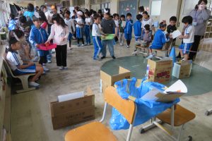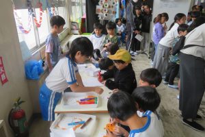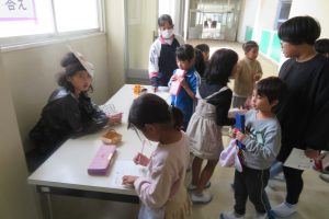 今日の昼休み、支援学級の子たちが「にこにこ ハロウィン」というお楽しみイベントを開催して、1,3,5年生を招待してくれました。
