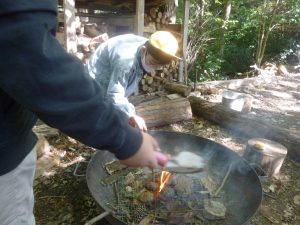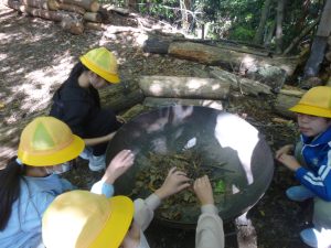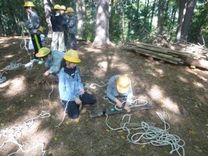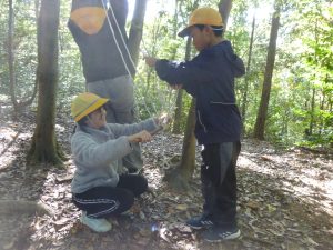 森林文化アカデミーの「ナバ先生」を講師に、ロープワーク、遊具づくり、木の葉の観察など、森の中で1日体験してきました。