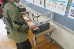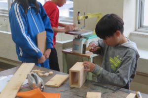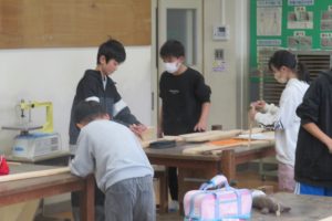 のこぎり、糸鋸盤、サンドペーパーなど、様々な道具を駆使して作っていました。一人一人の工夫が伝わってきました。道具が正しく使えているのもよかったです。