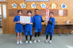 スポーツ少年団バスケットボール秋季大会 6年Aチーム「準優勝」と混合Aチーム「3位」の報告に来てくれました。おめでとうございます。次は「優勝」を目指して頑張ってください。