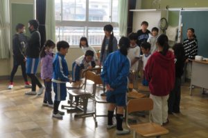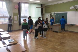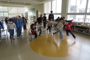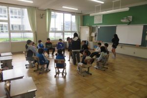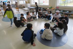 天気の都合で急遽室内での活動になりましたが、何回も繰り返してきたので、班の中での仲良し度もあがり、よい感じで遊びができるようになっています。