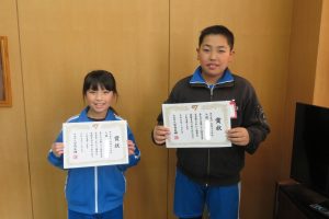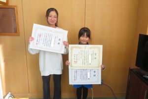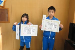 まず、JA共生小中学生書道コンクール 条幅の部:岐阜新聞岐阜放送賞&半紙の部:優良賞 と 半紙の部入選の二人です。おめでとうございます。